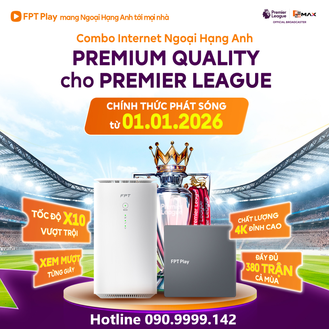 Đăng ký Gói cước Internet FPT, tặng kèm tài khoản FPT Play xem trọn vẹn Ngoại hạng Anh và Box Tivi 4K. Tiết kiệm chi phí mỗi tháng lên đến 100.000 vnđ.